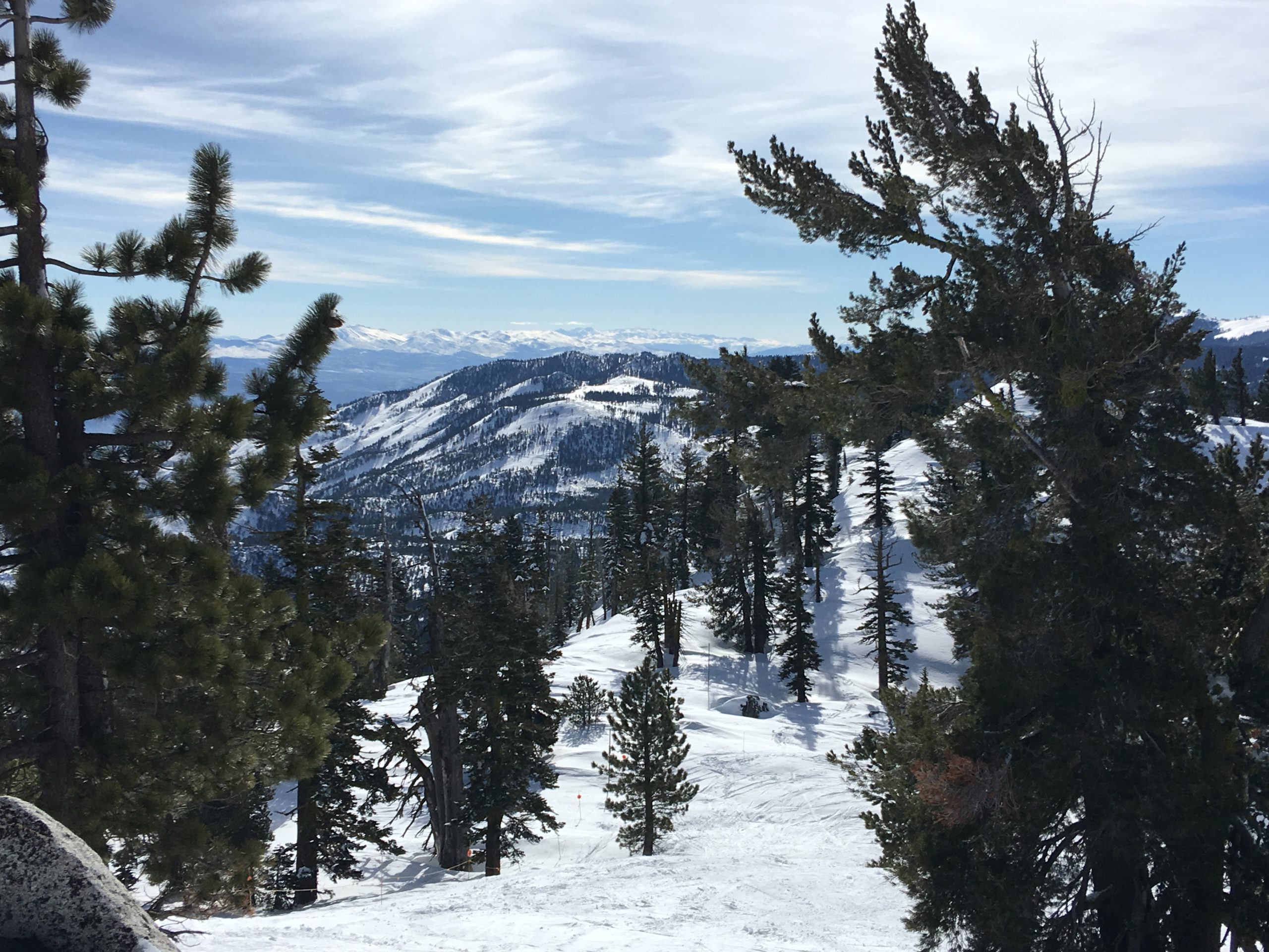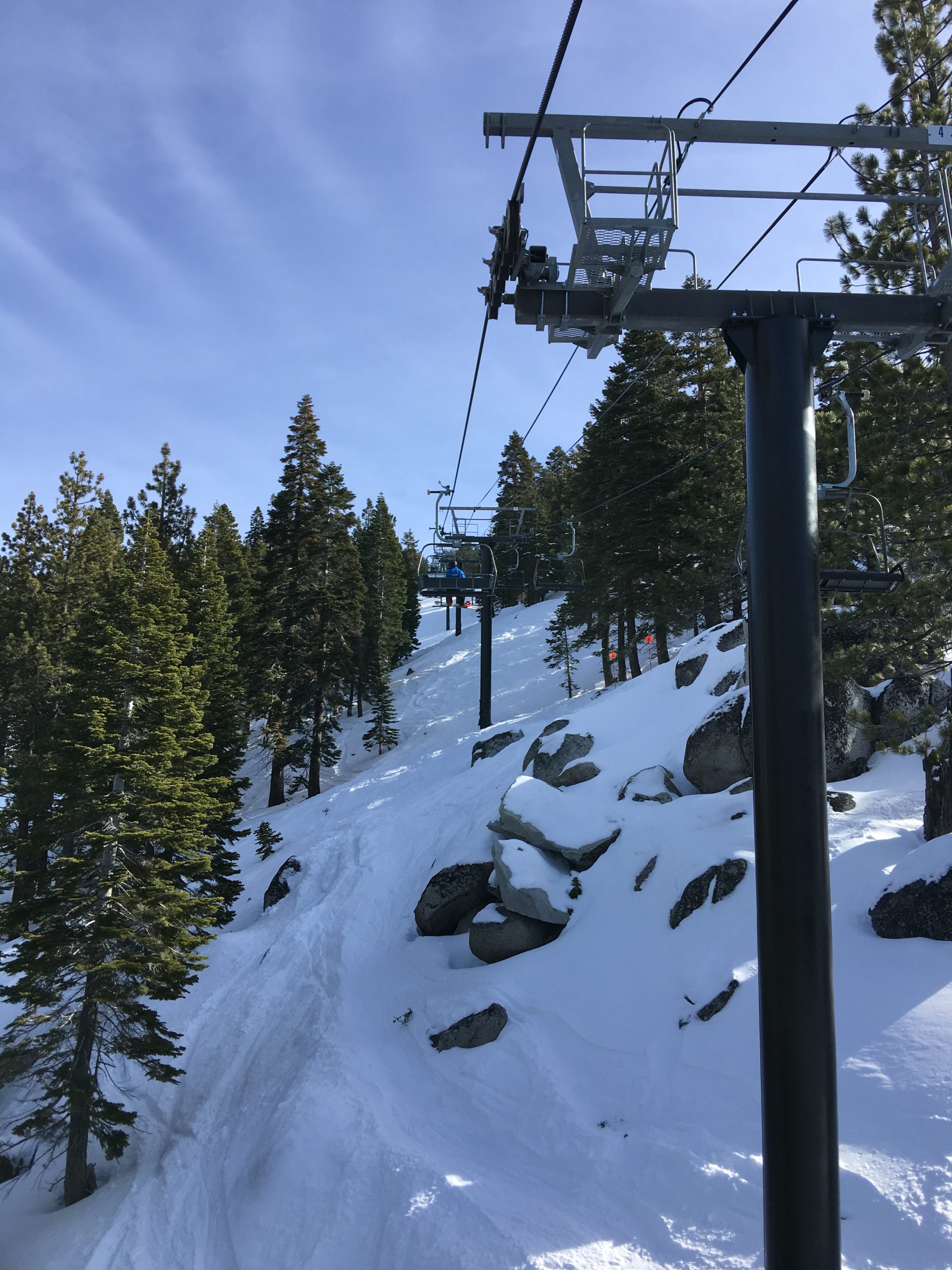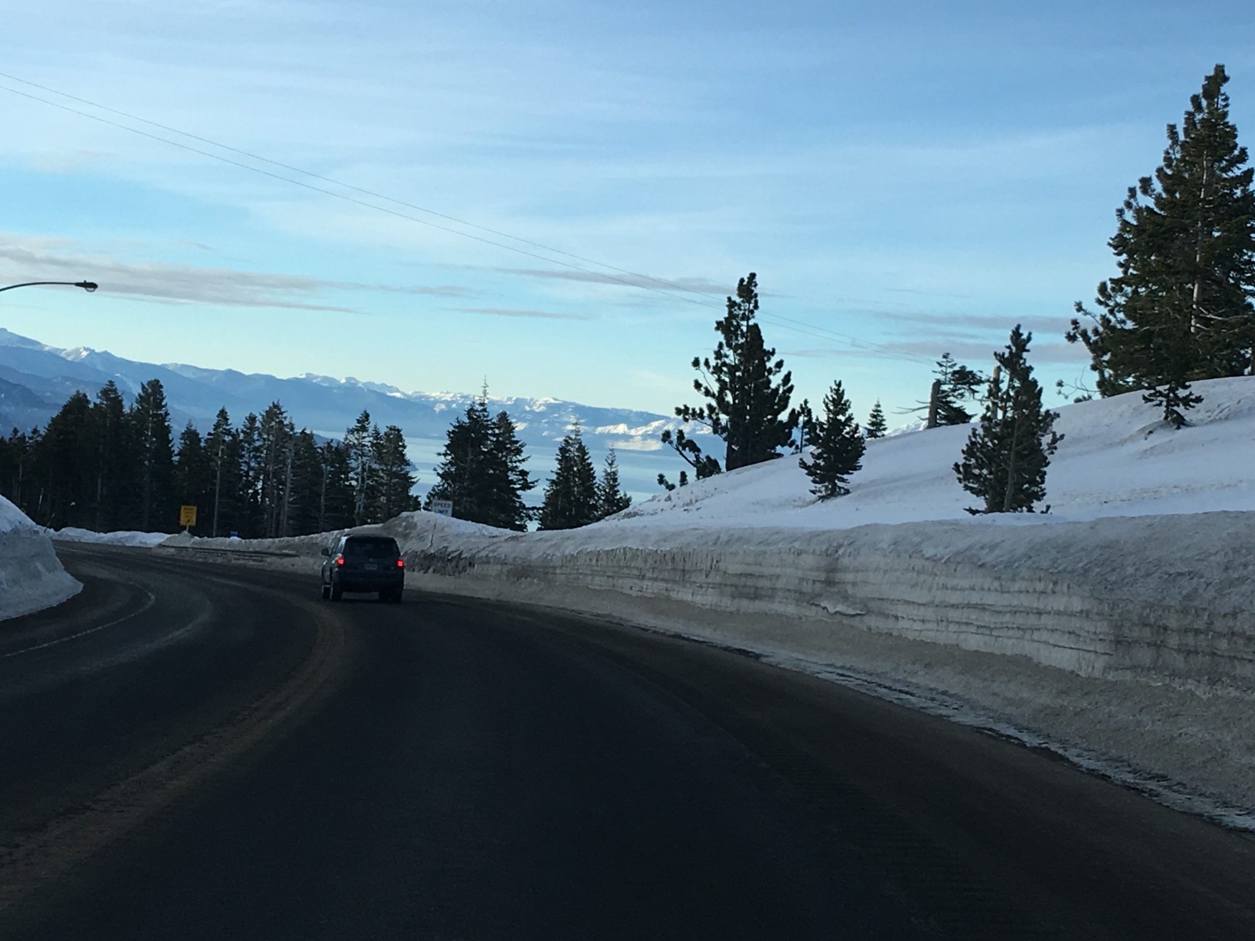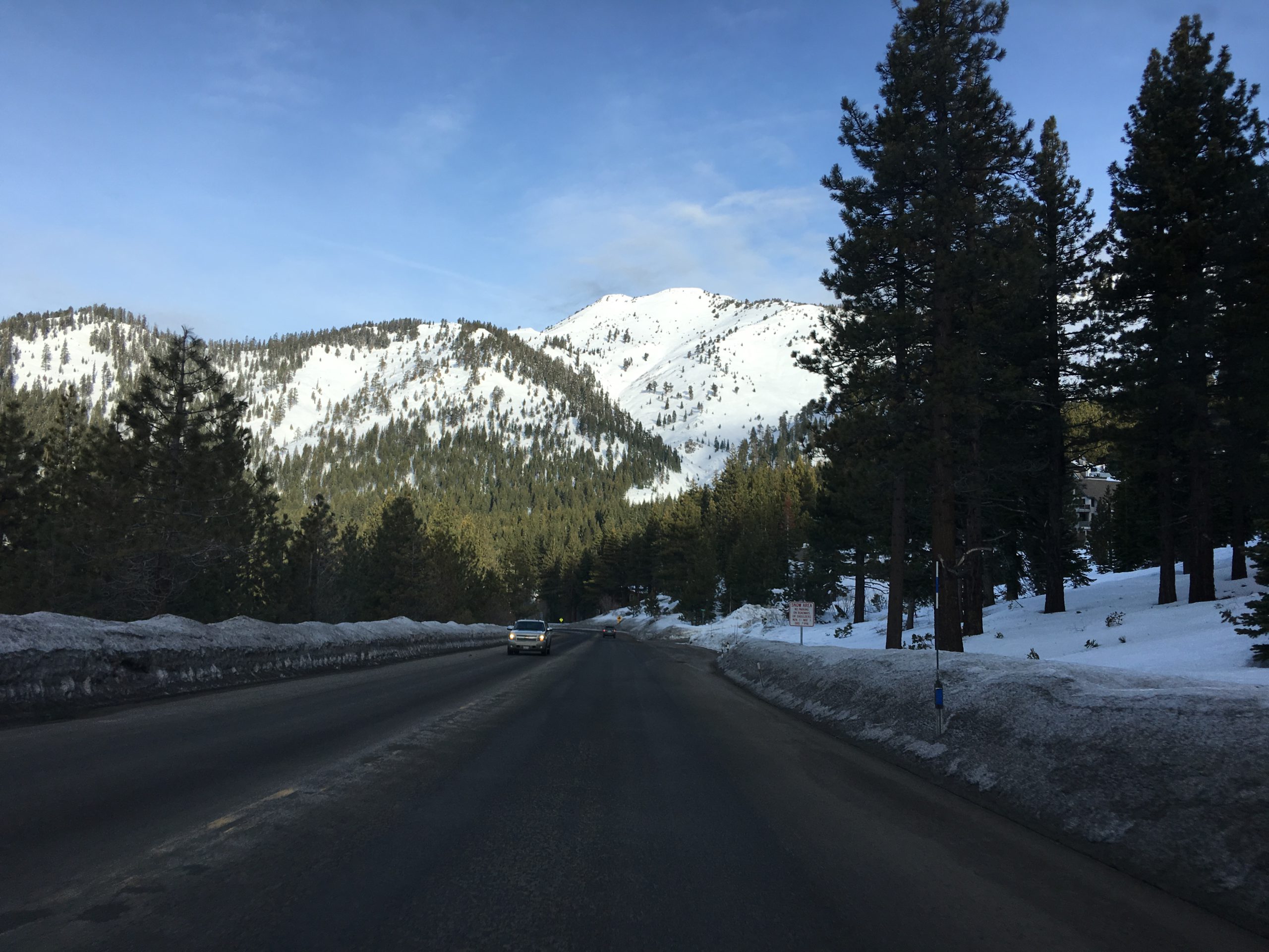 今冬は積雪が例年より多く、リノ・タホ―周辺のスキー場はどこもここ数年来久々の抜群のゲレンデ・コンディション。お天気と気温がマイルドな日を選び Diamond Peak Ski Resort へ。リノからMt.Rose Hwyのシーニック・ドライブを経てタホ湖もチラ見しながらスキー場へ。結構な降雪があった日から5日を経ていて道路はチェーン規制もなくクリアで安心ドライブ。リノ市内から小一時間もかからないでした。