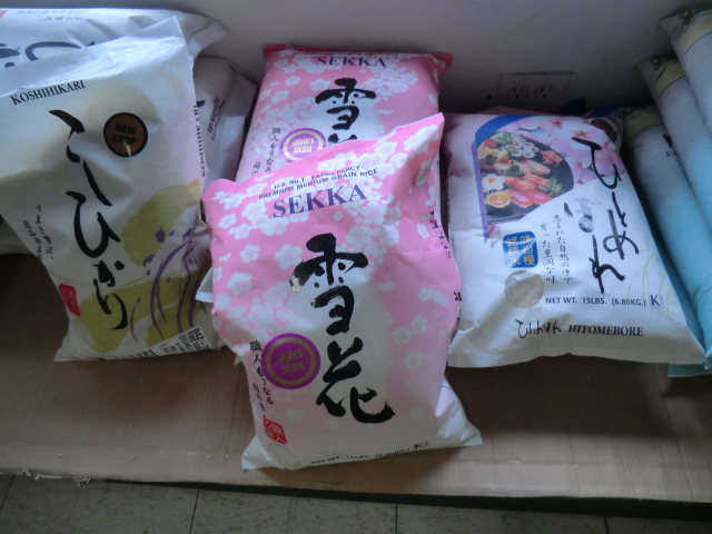 日本米は主にカリフォルニア産。韓国ブランドのカリフォルニア米は$12.99(2015年12月時)と安く日本米に近いお米。玄米(ブラウンライス)やタイ米などのロンググレインライスもあります。お酒は日本・韓国・中国・米国産のビール、や日本酒があります。